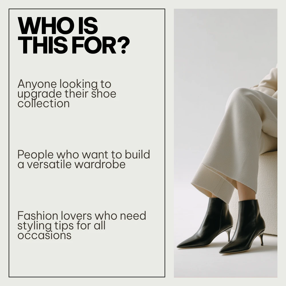 This bundle is exactly what I needed! As someone who loves shoes but often struggles with picking the right pair for an outfit or occasion, these guides have been invaluable. They’re perfect whether you're updating your wardrobe or starting from scratch – there’s something here for everyone!
