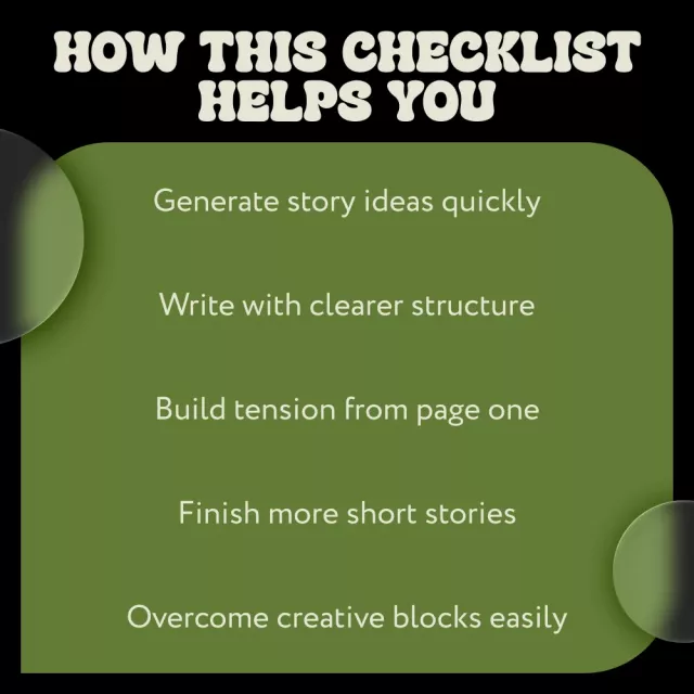 This checklist is structured to walk you step by step through the core of strong short fiction, from idea generation to tension and endings.