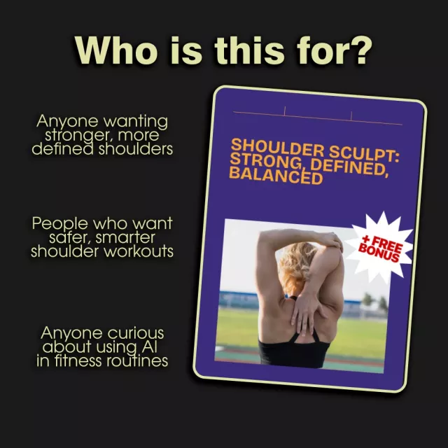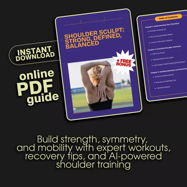 Ready to build shoulders that are strong, defined, and perfectly balanced? Shoulder Sculpt: Strong, Defined, Balanced is a step-by-step digital guide designed to take the guesswork out of your training. Whether you’re just starting or looking to refine your routine, this guide gives you the knowledge, workouts, and tools to create impressive results. By combining proven shoulder workouts with AI-powered support, it’s more than a manual—it’s your personalized fitness companion.