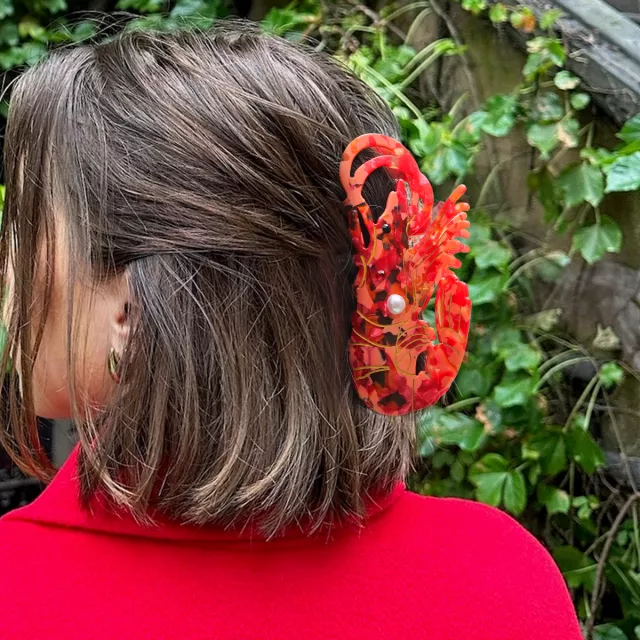 This shrimp pearl hair claw isn’t just another hair accessory—it’s a conversation starter. The playful design, combined with premium materials, makes it a must-have for anyone who loves standing out effortlessly. Slip it into your bag for quick hair touch-ups, or wear it all day as your signature style element. Wherever you go, it brings a hint of seaside charm and refined elegance to your look.