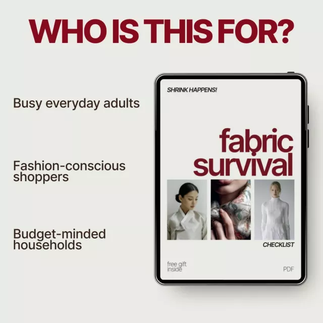 Unlike generic laundry guides, Shrink Happens! A Fabric Survival Checklist is designed as a fast, no-fluff reference you can use before every wash. It focuses specifically on what fabrics shrink in washing and how to avoid it, making it more targeted, practical, and easier to apply than long-form eBooks or blogs.