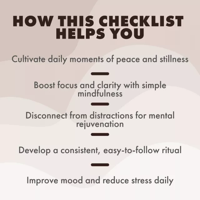 Inside the Silent Moments Daily Challenge Checklist, you’ll discover practical steps to create meaningful silence in your life. The checklist includes: