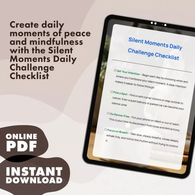 Embrace the stillness and unlock a calmer, more focused version of yourself with the Silent Moments Daily Challenge Checklist. Download it today and begin creating your daily silent moments that will transform the way you experience each day.