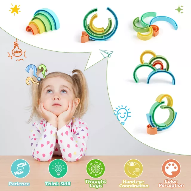 Encourage your child’s natural curiosity with a toy that’s as educational as it is fun. The Silicone Rainbow Building Blocks Set is the perfect blend of safety, learning, and endless creativity. Add it to your child’s toy collection today and watch their imagination shine.