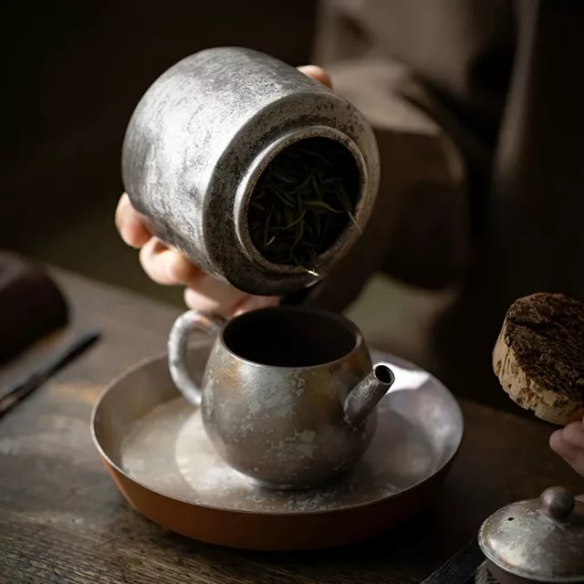 The silver-colored ceramic finish gives this tea pot a sophisticated, reflective shine, making it the ideal addition to any contemporary or traditional home. The cork storage box not only enhances the overall aesthetic but also ensures your tea set stays neatly organized and easy to access. Perfect for those who appreciate fine craftsmanship and the art of tea brewing, this set transforms an everyday ritual into a luxurious experience.