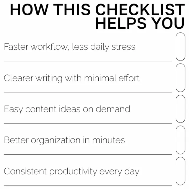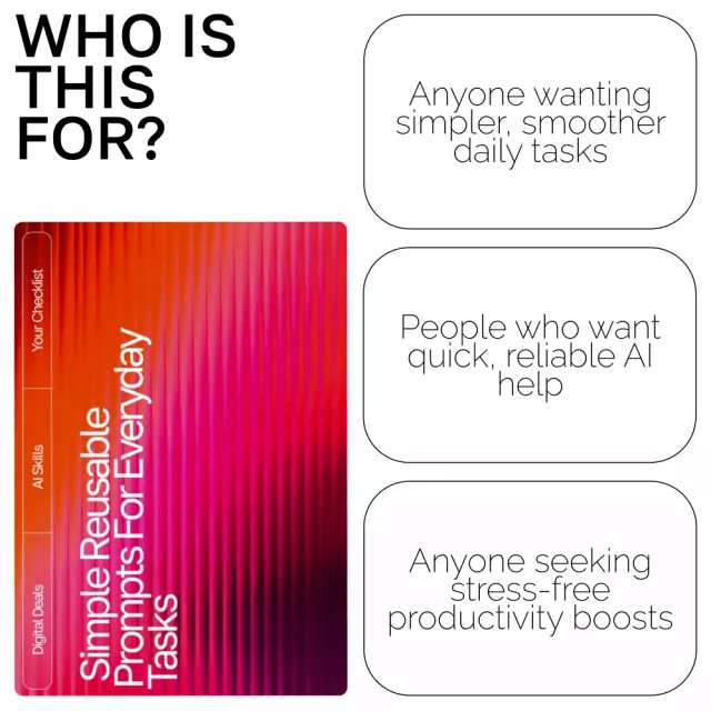 Busy professionals, creators, students, entrepreneurs, and anyone who wants to work smarter—not harder. If you love simplifying your workflow and want prompts you can reuse endlessly, this checklist is for you.
