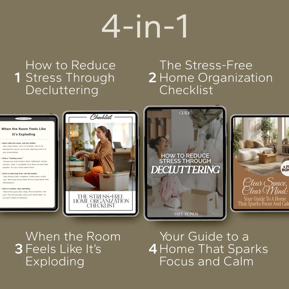 • The Stress-Free Home Organization Checklist – A simple, step-by-step checklist to get your home organized in a way that minimizes stress and maximizes calm.