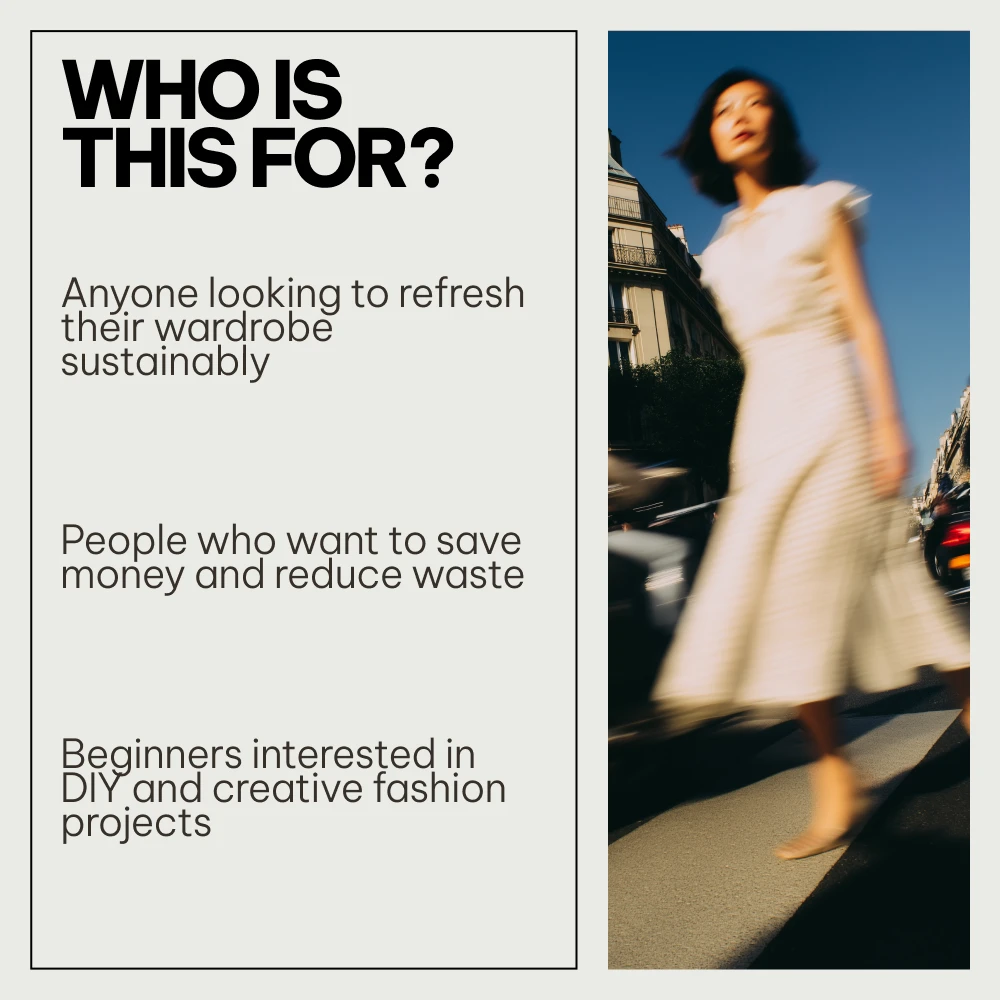This resource has been invaluable in helping me save money by upcycling the clothes I already own rather than buying new outfits. Moreover, reducing waste by giving my old clothes a second life feels incredibly rewarding. A must-have for anyone interested in sustainable fashion!