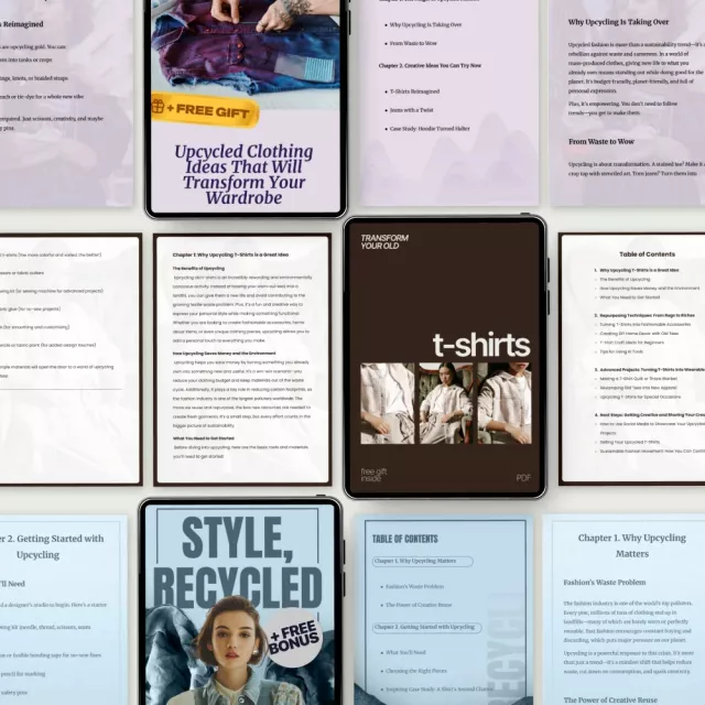 I've always been passionate about sustainable fashion and this bundle has truly helped me bring that passion to life. The guides are so well-structured, easy to follow, and they really cater to beginners. I love how it's not just a set of instructions but also includes practical tips on styling upcycled clothes. It's amazing how you can transform old t-shirts into something stylish with just a few simple steps! Plus, the fact that it helps reduce waste and save money is such a bonus.