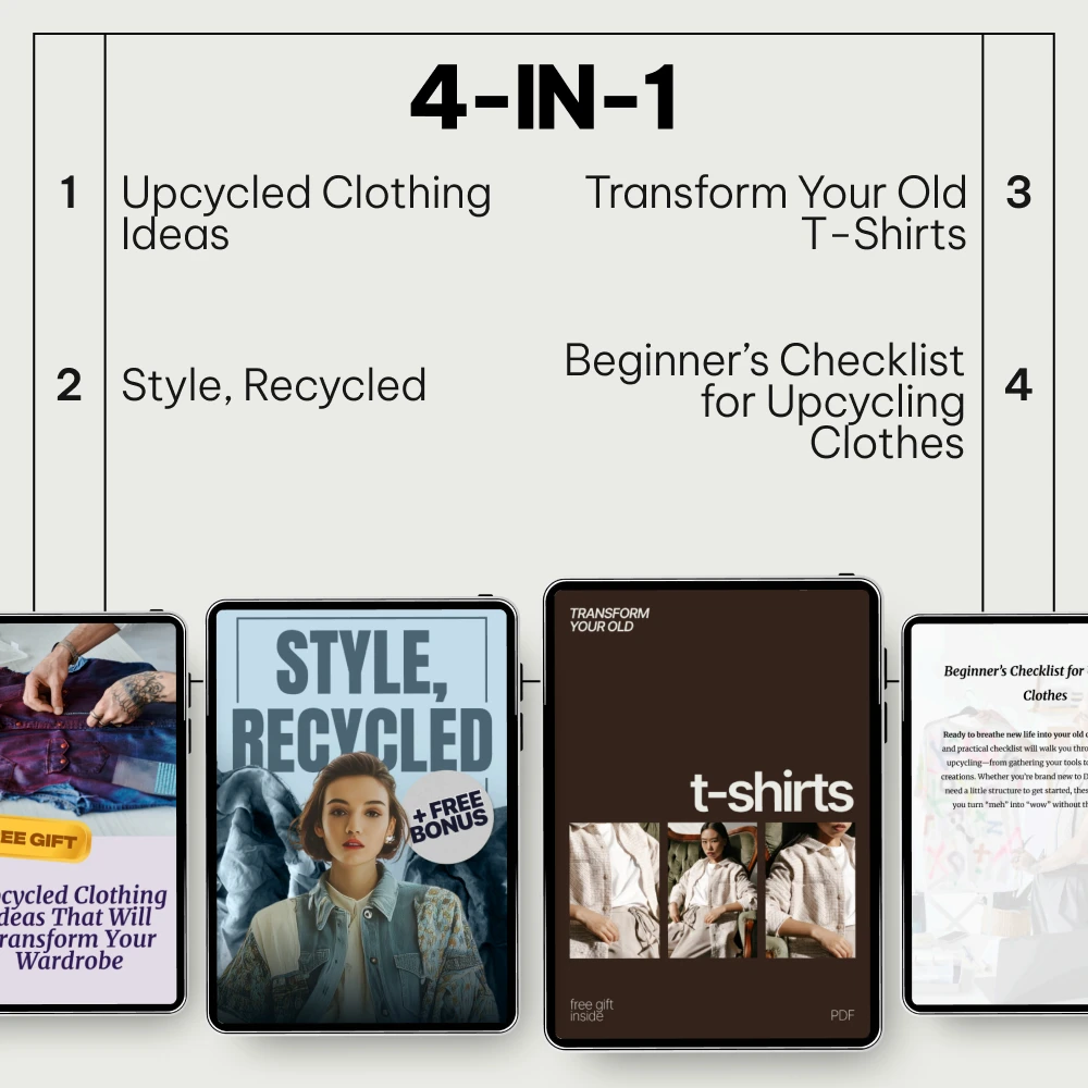 Are you looking to refresh your wardrobe without breaking the bank? Do you have old clothes lying around that you’re ready to breathe new life into? The Simple Upcycling Clothes Ideas for Beginners bundle is the perfect solution for anyone looking to dive into the world of upcycling. This 4-in-1 digital download pack is designed to guide you through the process of turning your old clothes into stylish, one-of-a-kind pieces, all while being eco-friendly and cost-effective. Whether you’re a beginner or just looking for some fresh, creative ideas, this bundle has everything you need to get started.