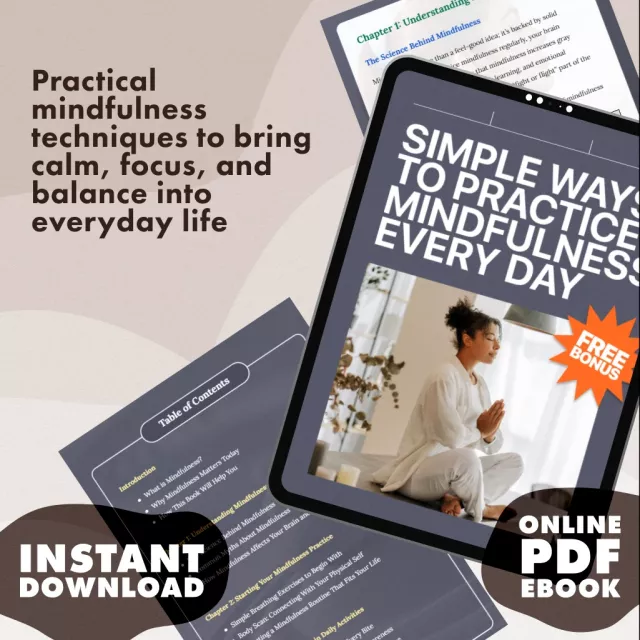 Start your journey toward a calmer, more mindful life today. Download Simple Ways to Practice Mindfulness Every Day now and begin experiencing more presence, balance, and peace in your daily routine. This instant digital download makes it easy to access your guide anytime, anywhere. Don’t wait—your mindful life starts here!