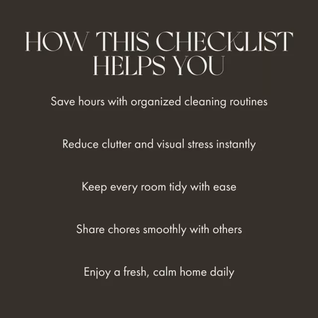 This checklist is ideal for anyone ready to reclaim their time and peace of mind — from parents juggling multiple responsibilities to students, couples, or individuals who want to maintain a tidy, welcoming space effortlessly. If you’ve ever felt cleaning was a never-ending cycle, this digital tool will change that mindset for good.