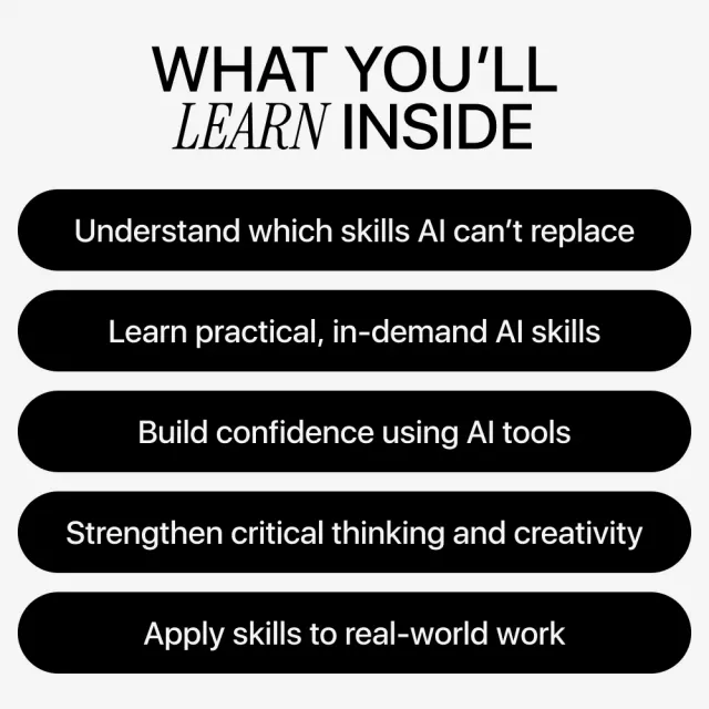 Unlike generic AI resources, this guide balances technical knowledge with human-centered skills, real examples, and practical application. It’s written in clear, simple language and focuses on action—not overwhelm—so you can start using what you learn immediately.