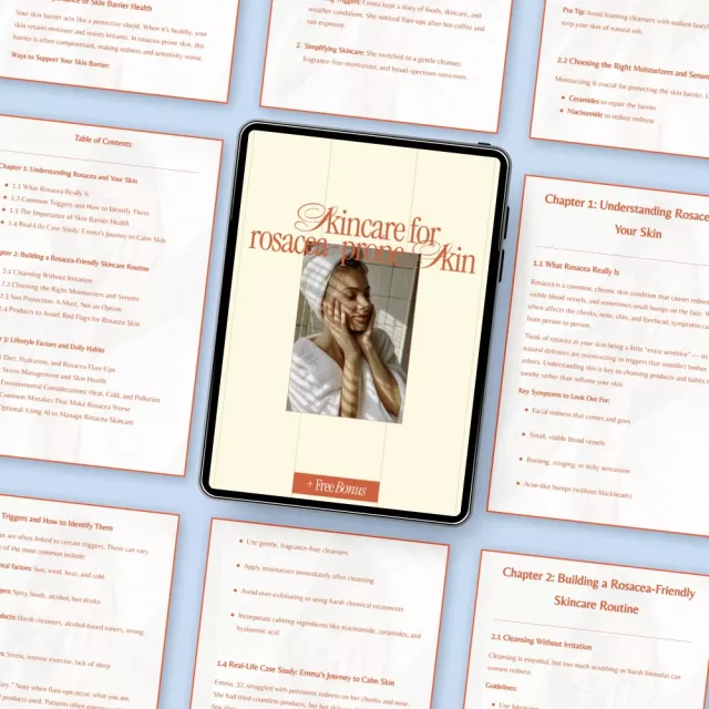 Unlike generic skincare guides, this one focuses specifically on skincare for rosacea prone skin, combining practical routines, lifestyle insights, and modern tools in one easy-to-follow format. It’s written in simple language, without medical jargon, and designed for real people with real skin challenges.