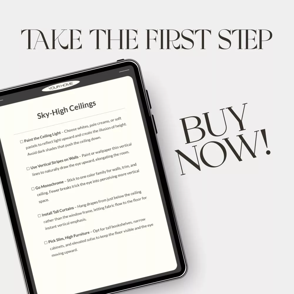 Download Sky-High Ceilings today and start learning how to make your ceiling look higher—the smart, stylish way. Turn every room into a space that feels open, elegant, and effortlessly tall. Your home deserves a lift—literally and visually!