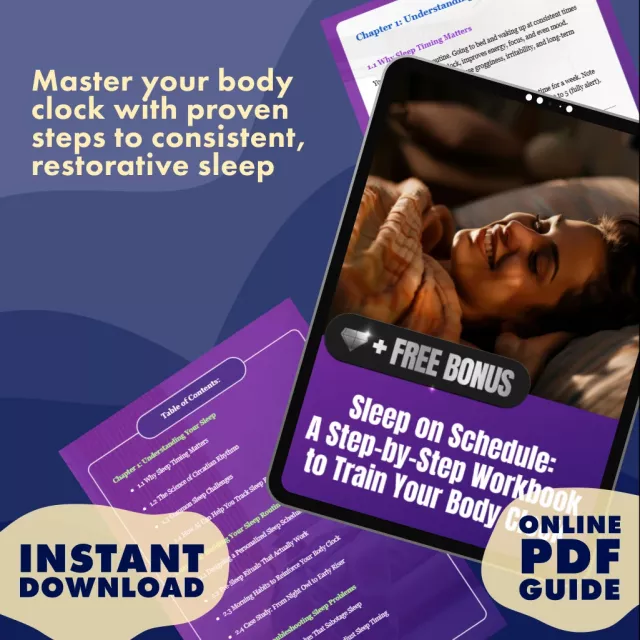 Your best nights (and days) are waiting. Download Sleep on Schedule: A Step-by-Step Workbook to Train Your Body Clock today and start building the sleep routine you’ve always wanted. This digital download is ready instantly—so you can begin transforming your nights right now.