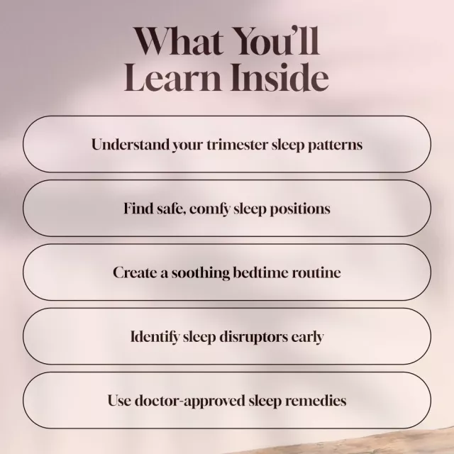 • Chapter 2: Sleeping Positions and Physical Comfort — Discover the best (and worst) sleep positions for the first trimester and how to get cozy with purpose.