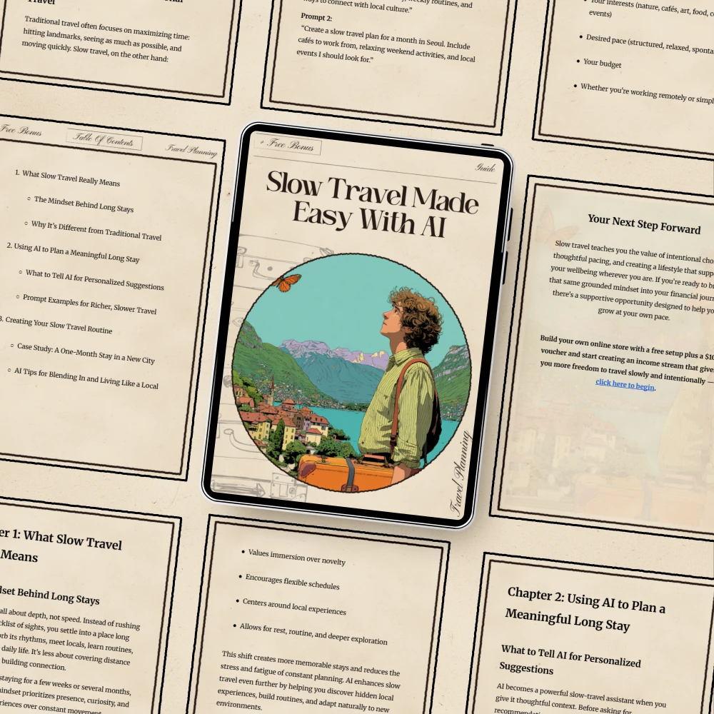 Discover a calmer, richer way to explore the world with Slow Travel Made Easy with AI—your essential guide to planning meaningful long stays using smart, intuitive tools. Whether you dream of spending a month in a new city or simply want more soul-filled travel experiences, this guide shows you how to slow down, stay longer, and let technology enhance—not overwhelm—your journey. Inside, you’ll learn how to use ai slow travel suggestions for long stays to design immersive, life-expanding adventures.