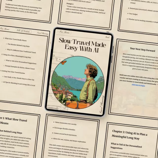 Download Slow Travel Made Easy with AI today and start crafting long-stay adventures that feel meaningful, manageable, and uniquely yours. Your next unforgettable journey begins with a single click.
