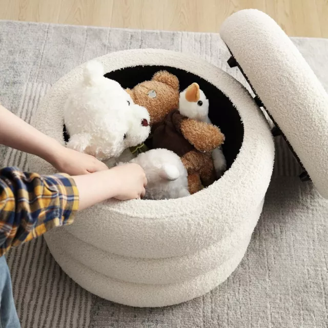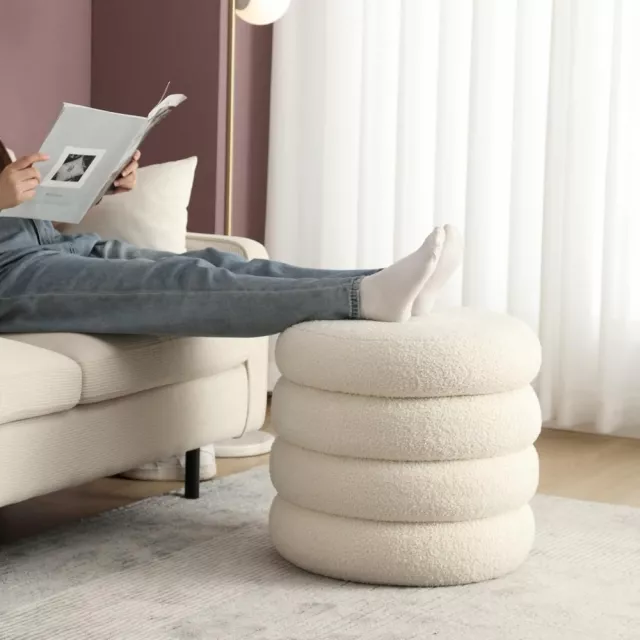 Small Boucle Storage Ottoman – Round Sherpa Footstool with Removable Lid