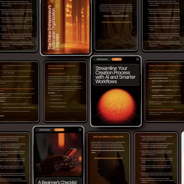 • The Online Entrepreneur’s Actionable Organization Checklist: An easy-to-follow checklist that will help you stay on top of your daily tasks and ensure nothing slips through the cracks.
