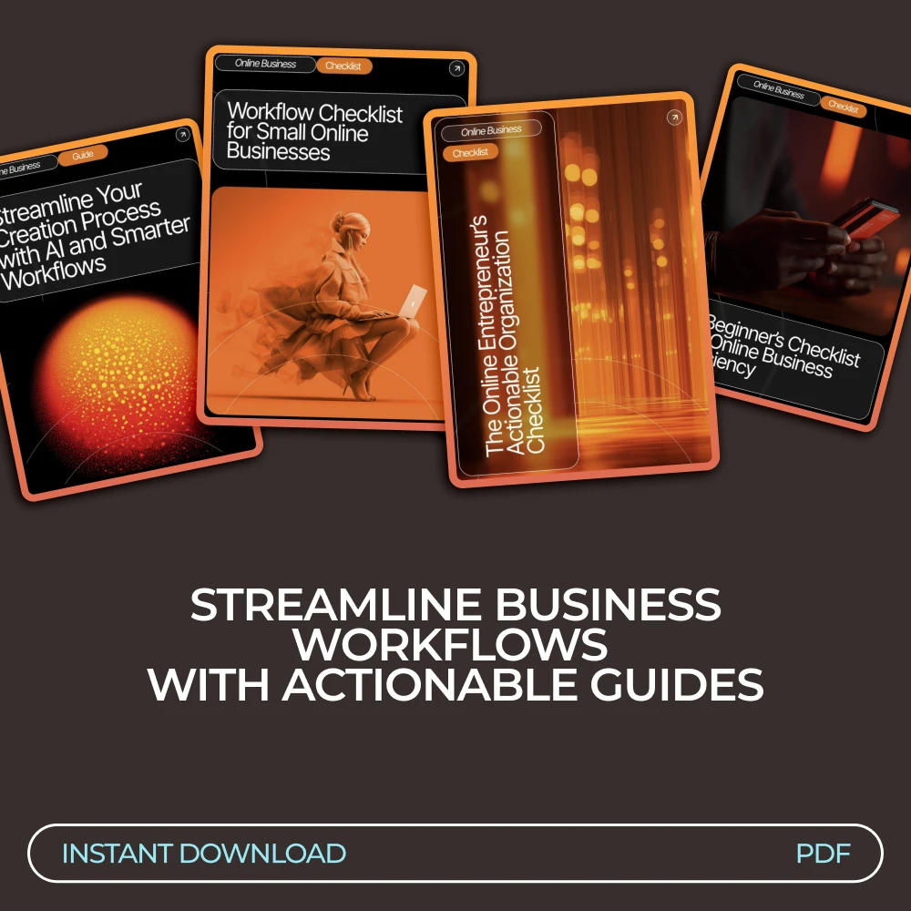 • Workflow Checklist for Small Online Businesses: A detailed checklist designed to streamline your workflow and ensure maximum productivity, no matter how busy you are.