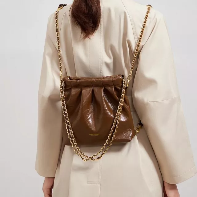 Discover a chic and versatile crossbody bag designed to keep you stylish and organized wherever the day takes you. This small PU leather bucket bag blends a modern silhouette with a soft, smooth finish that feels luxurious without the fuss. With its gold-tone chain strap and clean solid-color design, it instantly elevates any outfit—perfect for work, casual outings, or weekend errands.