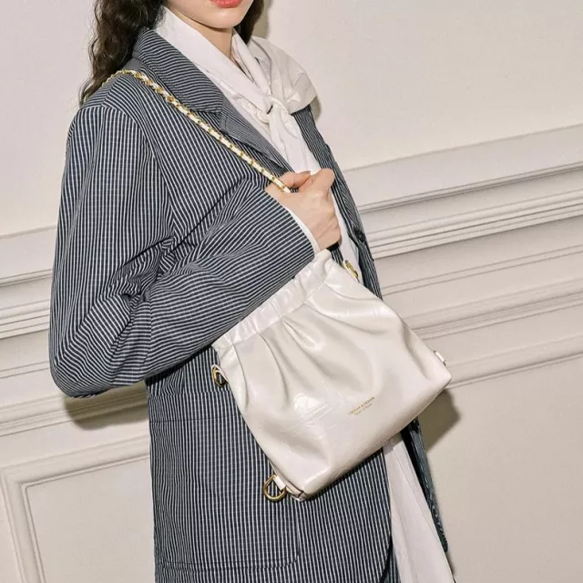 This compact shoulder and crossbody bag offers the ideal balance of beauty and function. Its soft structure makes it comfortable to carry all day, while the bucket shape gives you convenient storage for your essentials. The secure hasp closure keeps your items safe, and the exterior open pocket lets you grab your phone or cards in seconds. Inside, an interior compartment provides simple, organized space for makeup, keys, small notebooks, or personal accessories.