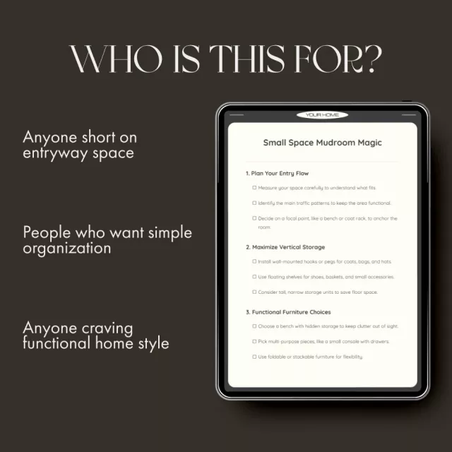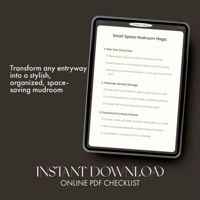 Looking to bring order and charm to your entryway? Small Space Mudroom Magic is your go-to digital checklist for learning how to create a mudroom in a small space. Designed for apartment dwellers, small home owners, and anyone craving more organization, this easy-to-follow guide shows you how to turn even the tiniest nook into a functional, beautiful drop zone for everyday essentials. From layout planning to clever furniture choices, you’ll find step-by-step inspiration to make your space feel bigger, tidier, and effortlessly stylish.