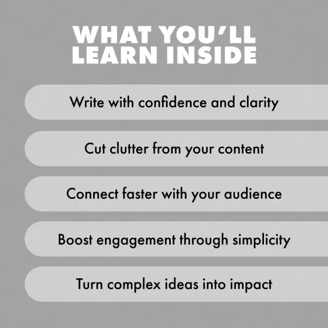 • Learn the secret to making simple content powerful with proven writing techniques.