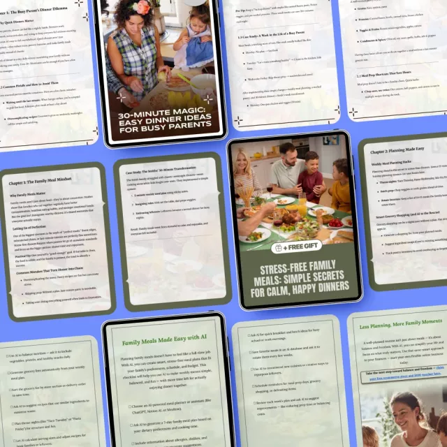 Are you tired of struggling to plan meals for your family? Do you feel overwhelmed by the endless options and the time it takes to get dinner on the table? Our Smart Bundle for Family Meal Planning is here to save you time, stress, and effort. This 4-in-1 bundle of digital downloads includes all the essential guides, eBooks, and checklists you need to create stress-free, delicious meals for your family, even on the busiest days! Learn how to use AI to organize a family meal plan and make mealtime easier and more enjoyable for everyone.