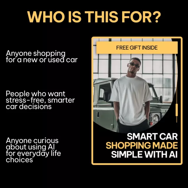 This checklist is perfect for first-time car buyers, busy professionals, families upgrading vehicles, or anyone who wants a smarter, less stressful way to shop. If you like structured guidance and want to make AI work for you instead of overwhelming you, this resource was made for you.