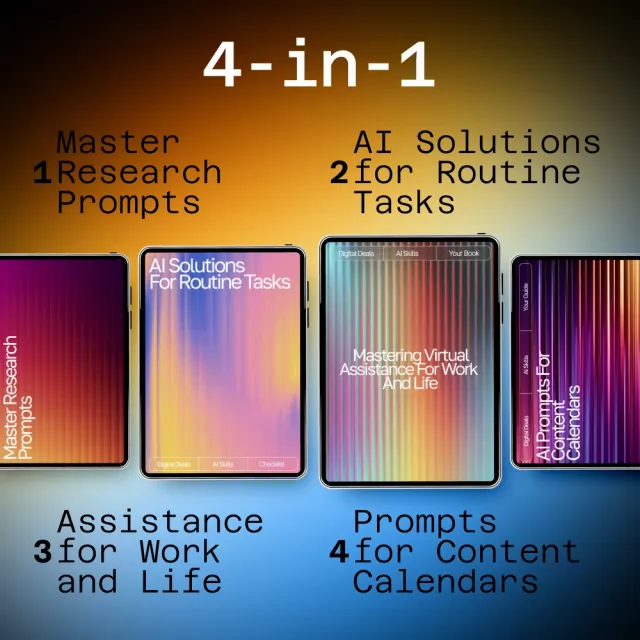 Build smarter workflows, create content faster, and finally feel supported by AI in your daily work. The Smart Creator AI Toolkit is a powerful 4-in-1 digital bundle designed to help creators, entrepreneurs, and virtual professionals simplify tasks, organize ideas, and build repeatable systems that actually work. This toolkit brings together practical guides, strategic prompts, and ready-to-use frameworks so you can stop guessing and start executing with confidence.
