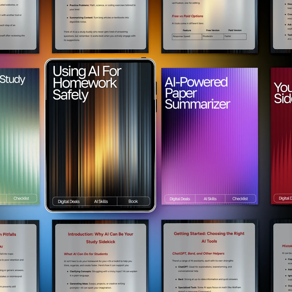 AI is everywhere in education, but knowing how to use it the right way makes all the difference. The Smart Guide to Using AI for Homework Responsibly is a practical, student-friendly 4-in-1 digital bundle designed to help you get real academic support from AI without crossing ethical or academic integrity lines. Whether you’re writing papers, studying for exams, or polishing assignments, this bundle shows you how to work smarter, not riskier, with AI tools.