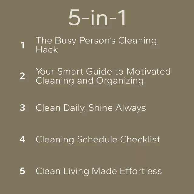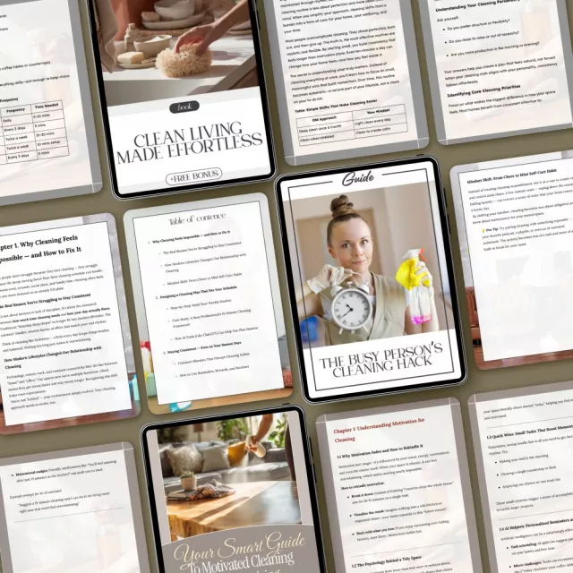 • The Busy Person’s Cleaning Hack – A quick guide that reveals how to get your home sparkling clean in minimal time, even on the busiest days.