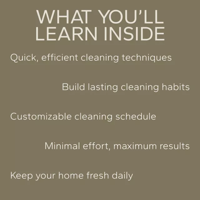 • Step-by-step guides and checklists that keep you on track and motivated to maintain a consistently clean home.