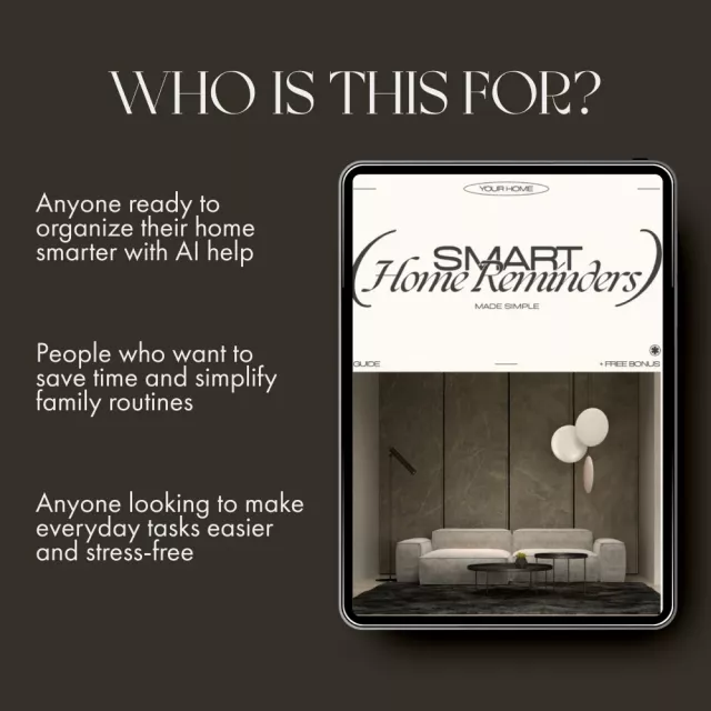 Take the stress out of home organization with Smart Home Reminders Made Simple — your all-in-one digital guide to mastering home management using AI. Whether you’re a busy parent, a tech lover, or someone craving an easier way to stay on top of daily tasks, this guide helps you turn reminders into results. Learn how to automate grocery lists, streamline chores, and boost productivity while keeping your home running like clockwork — all powered by AI tools you already love.