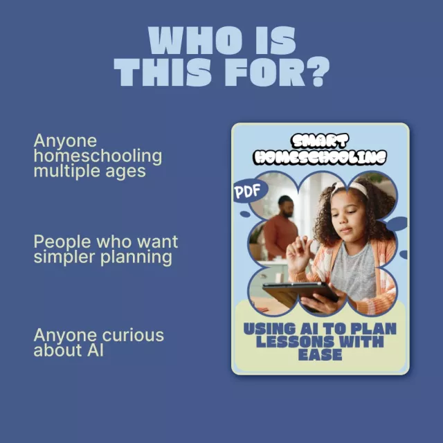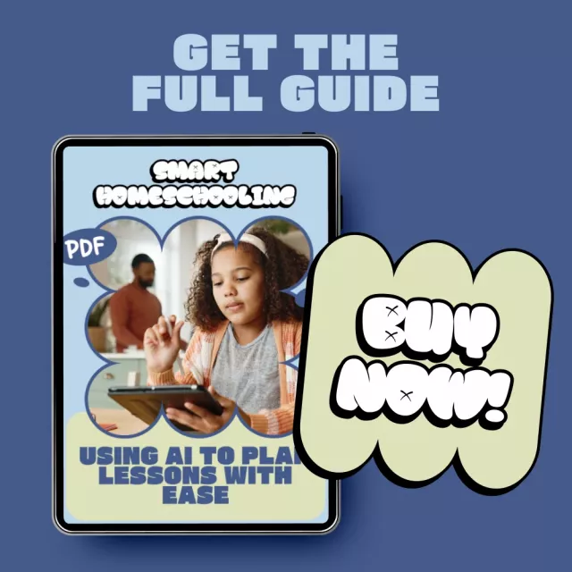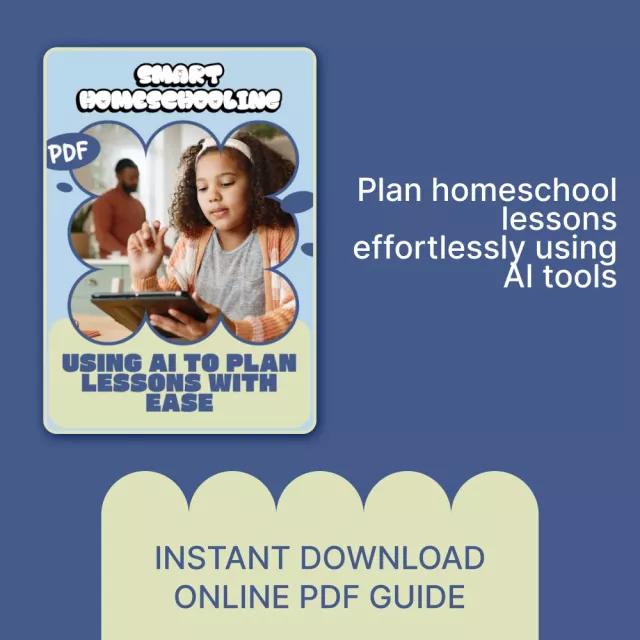 If you’re ready to simplify your homeschool routine and create flexible, engaging lessons with ease, this digital guide is for you. Download Smart Homeschooling: Using AI to Plan Lessons with Ease today and take the first step toward a more organized, confident, and stress-free homeschooling experience.