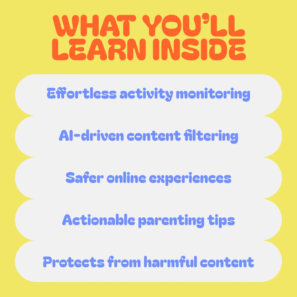 • Time-Saving Tools: The checklist and AI-powered tools simplify your job of ensuring your child’s safety and happiness online.