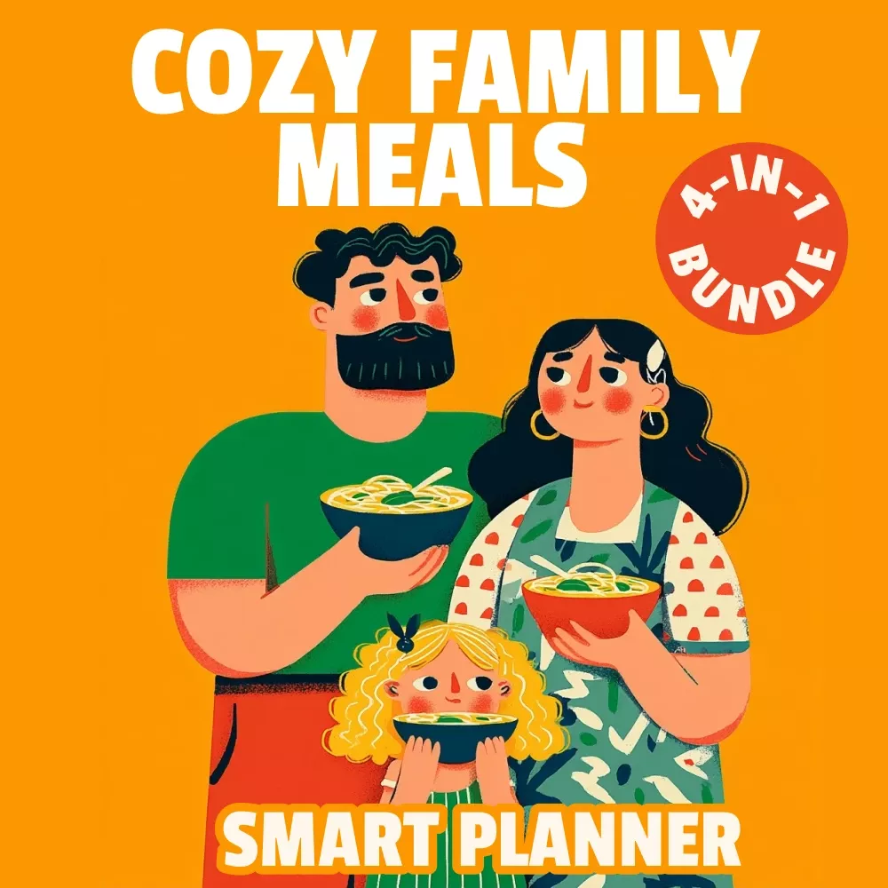 Are you tired of the chaos that comes with family meal planning? Say goodbye to last-minute dinner stress and hello to a smarter way of creating cozy family meals. The Smart Planner for Cozy Family Meals is a comprehensive 4-in-1 digital bundle designed to help you plan, organize, and enjoy stress-free dinners with your loved ones. Featuring AI-powered tools and expert guidance, this collection will revolutionize your family dinner routine and make your meals more enjoyable, efficient, and stress-free.