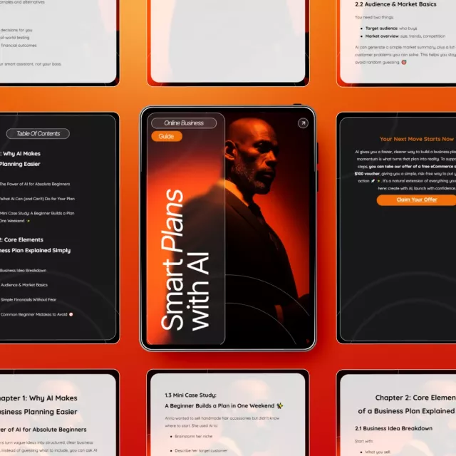 Unlike generic business planning ebooks, Smart Plans with AI blends simple explanations with practical AI guidance you can use instantly. Every chapter is written for beginners, focusing on clarity, ease, and fast results. You’re not just learning—you’re building your plan as you read.