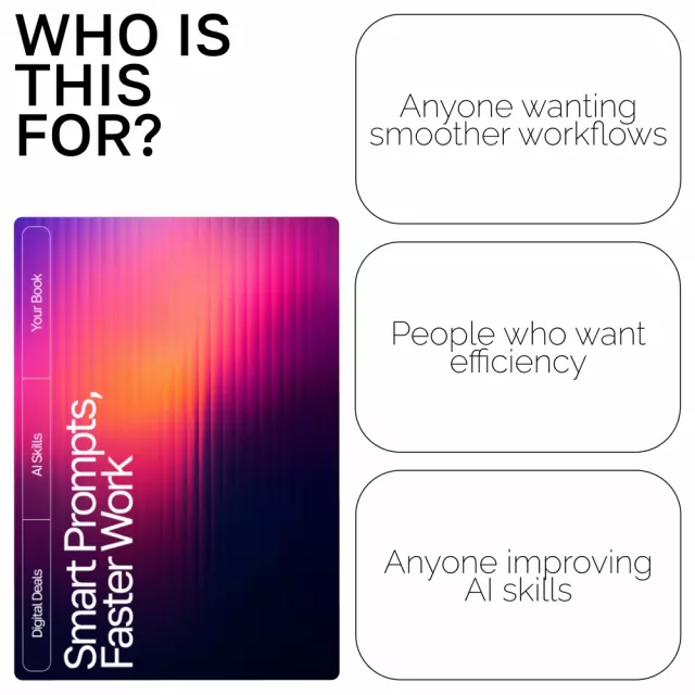 Unlock the full power of AI with Smart Prompts, Faster Work—your essential productivity eBook designed to help you work smarter, not harder. Whether you’re creating content, planning projects, researching ideas, or streamlining tasks, this guide shows you how to use reusable prompt templates for productivity to dramatically improve your workflow. Clear, actionable, and beginner-friendly, it turns confusing prompt-writing into a repeatable system you can rely on every day.