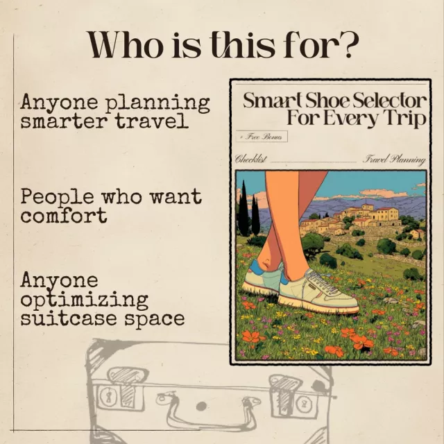 Upgrade the way you pack with the Smart Shoe Selector for Every Trip, a clear, practical, and time-saving digital checklist designed to help travelers choose the perfect footwear for any adventure. Whether you’re preparing for a city escape, a rugged hiking retreat, a beach holiday, or a work trip, this guide shows you exactly how to use ai for shoe selection for different trips so you can pack confidently, comfortably, and without overthinking.