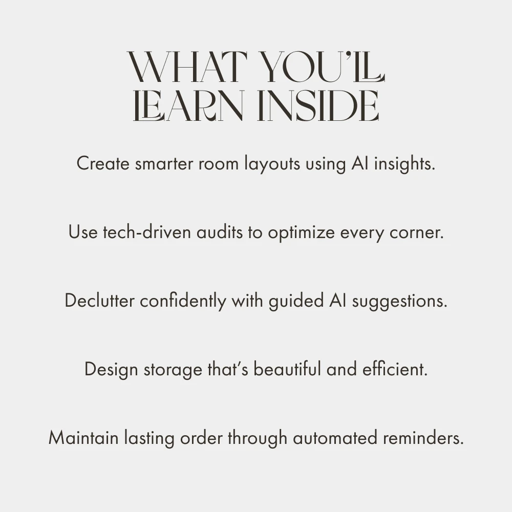 • Chapter 6: Maintaining Your Organized Space – Set AI reminders and build effortless habits.