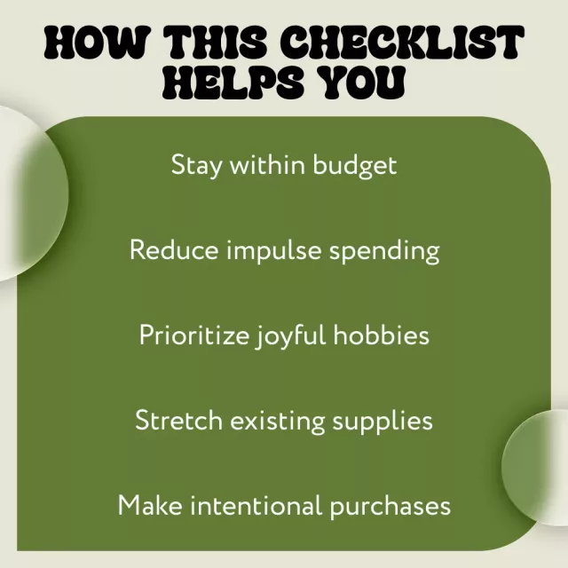 This checklist is perfect for hobbyists, creatives, side hustlers, and anyone who wants to enjoy their interests without financial stress. If you love starting new projects, collecting supplies, or juggling multiple hobbies, this resource helps you focus your spending where it matters most.