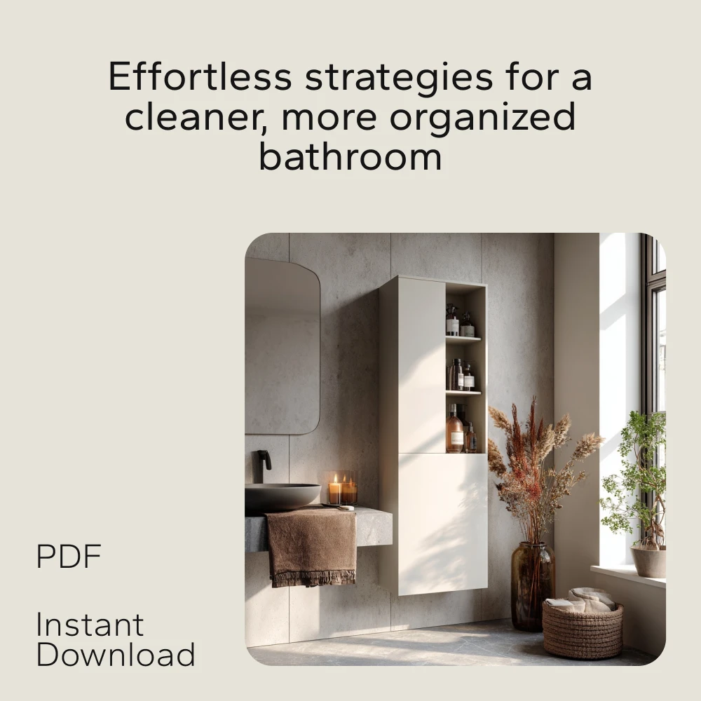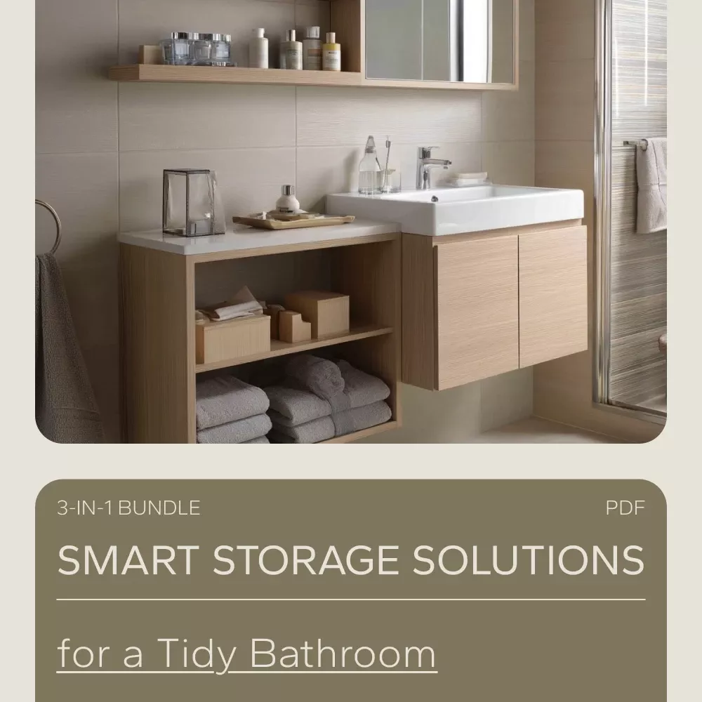 Don’t let bathroom clutter take up any more of your time or energy. Download the Smart Storage Solutions for a Tidy Bathroom bundle today and start organizing your bathroom in no time. Say goodbye to stress and hello to a well-organized, functional space that works for you. Perfect for those looking for practical and creative solutions to organizing bathroom storage!