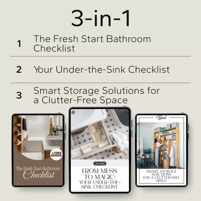 • The Fresh Start Bathroom Checklist: A step-by-step guide to help you declutter and refresh your bathroom, from top to bottom.