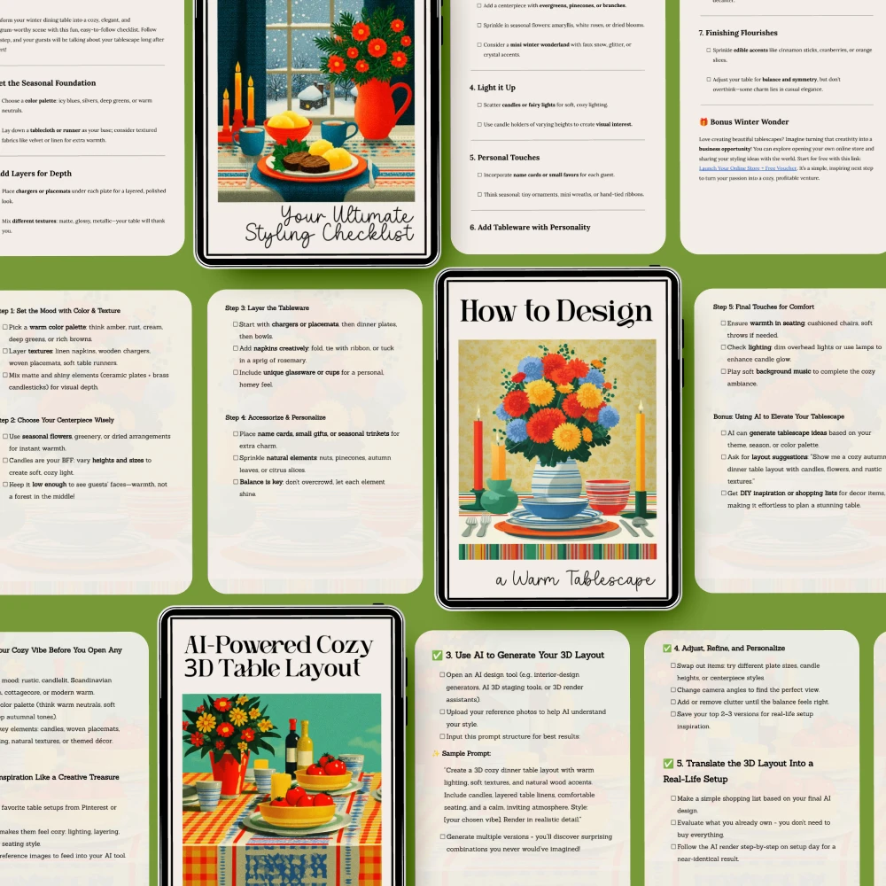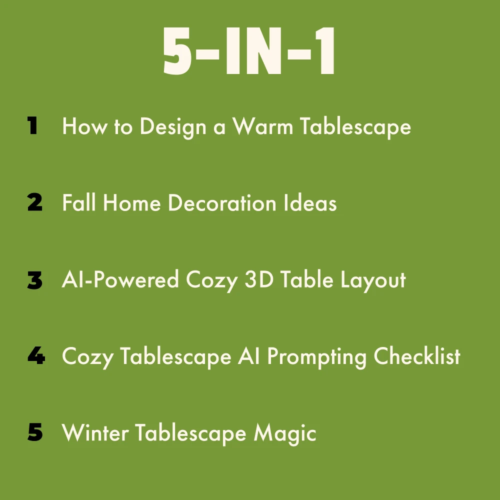 • Cozy Tablescape AI Prompting Checklist – A handy checklist to guide you in creating the perfect cozy tablescape, with AI suggestions for easy styling.