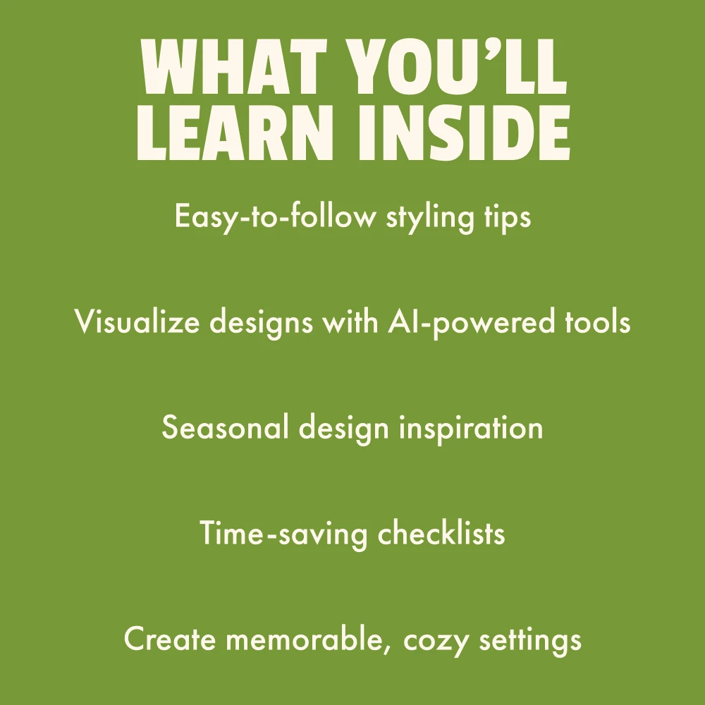 Unlike other generic styling guides, this 5-in-1 bundle gives you the complete package—professional insights, practical tools, and creative inspiration—all designed to make styling your tablescapes simple, fun, and stress-free. With the How to Design a Warm Tablescape guide, the AI-powered layout tool, and handy checklists, you’ll have everything you need to bring your vision to life. Why settle for just a few ideas when you can have a full toolkit?