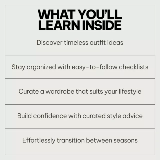 This was a solid purchase. I appreciated how everything is broken down by season, and the signature style section gave me some clarity I didn’t realize I needed. A few outfit suggestions were a little similar to things I already own, but that’s probably because my style already leans classic. The checklists are practical and easy to follow. Definitely helpful if you want more organization in your closet.